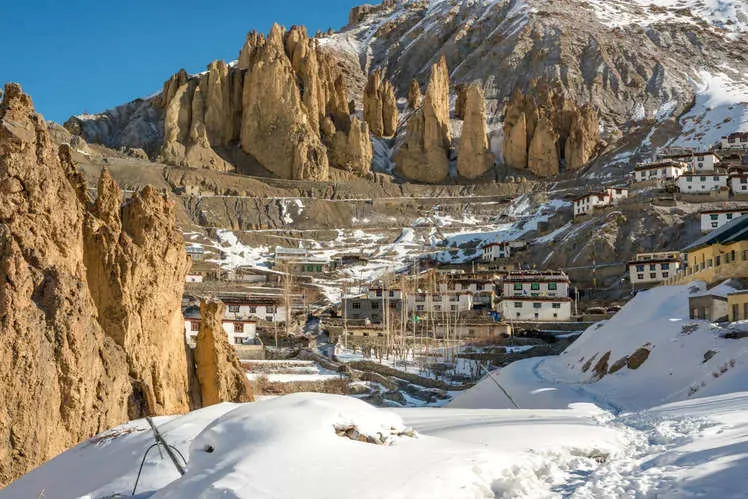 Located in the Spiti Valley at an altitude of over 4,200 m, Kibber is one of the highest villages in the world. A prime location for snow leopard sightings, and a village known for its rich Tibetan culture, with traditional homes and a serene monastery. Adventure seekers can explore nearby trekking routes and experience the raw beauty of the Spiti landscape.