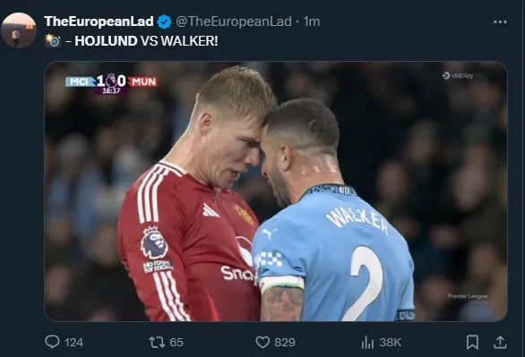 As the players and the referee ran towards the scuffle, heated arguments broke out between the two sets of players. However, the replays showed that Walker was not headbutted by Hojlund, and that the Manchester City right-back had play-acted to potentially get the forward booked.